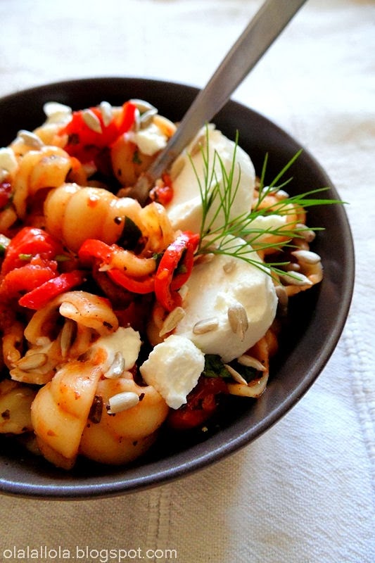 Sałatka jest mega! Nie dość, że kolorowa, prosta, to bardzo smaczna. Żadne jakieś wielkie joł, ot kilka składników...idealna na lunch, obiad, posiłek na chwilę przed pilatesem - jeśli chodzi o mnie;)